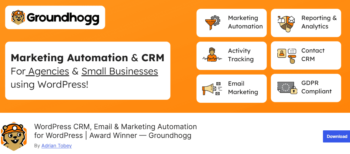 Groundhogg is an excellent self-hosted CRM and marketing automation plugin that gives you full control over your data, automations, and email marketing, all from your WordPress dashboard.